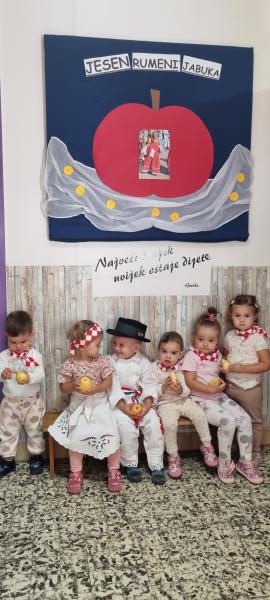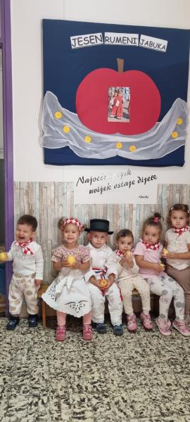 Nakon plesne izvedbe, mališani su se počastili sočnim jabukama, voćem koje je prepoznatljivo kao simbol jeseni. Jabuka, koja je često povezana s plodovima zemlje, veseljem i zdravljem, savršeno je upotpunila ovaj lijepi trenutak.